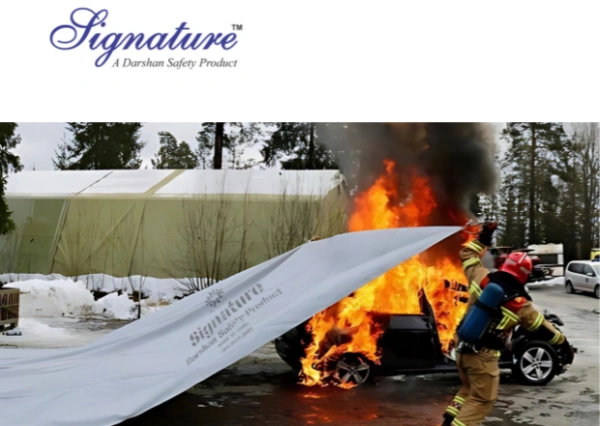 The SIGNATURE CAR FIRE BLANKET (DSZCFB0.8P) by Darshan Safety Zone is a premium fire suppression blanket specially designed for vehicles. Made from high-performance fire-resistant fabric with a 0.8 mm thickness, this blanket is built to smother car fires swiftly by cutting off the oxygen supply. It provides effective protection against both electric vehicle (EV) and fuel-based engine fires, making it essential for use in parking areas, service stations, tunnels, and emergency response vehicles.